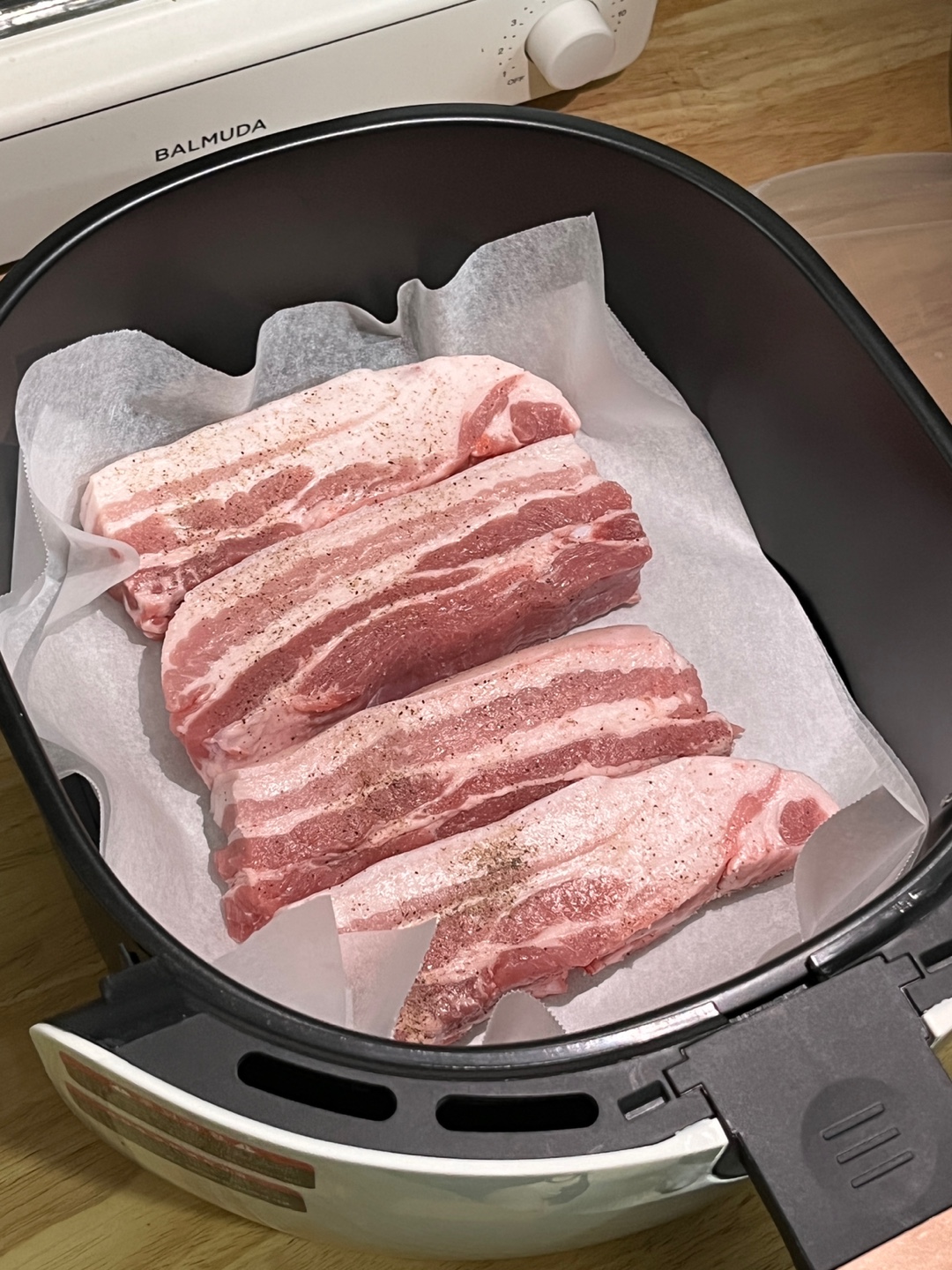 간단하게 통삽겹에 후추정도만 뿌려주었어요~